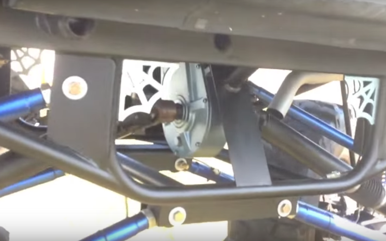 When I went down to talk to the owner/builder of this Geo Tracker I learned some interesting details about it. First that I saw is that he Turbo Charged the 1.8 engine in it to give it more power to turn those tires monster military tires. Then I noticed the drop down transfer case made by STS which is a pretty serious piece of drivetrain.