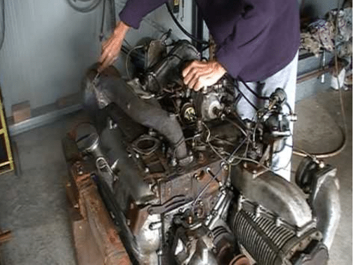 Now the real odd part is that this engine has no cylinder head to speak of? Instead both pistons share a cylinder and come at each other to make compression. It uses a Roots supercharger to force are into the cylinder like a GMC diesel does.Then the pistons come together to compress the air and the fuel is injected pushing both pistons back. Then as seen it the second video rocker arms are used to change the mpveent down to a crankshaft under the cylinders. It is a very odd layout and you may think it is ingenious to an extent. However seeing how it never caught on so to speak then it had to have inefficiencies or some other weaknesses?