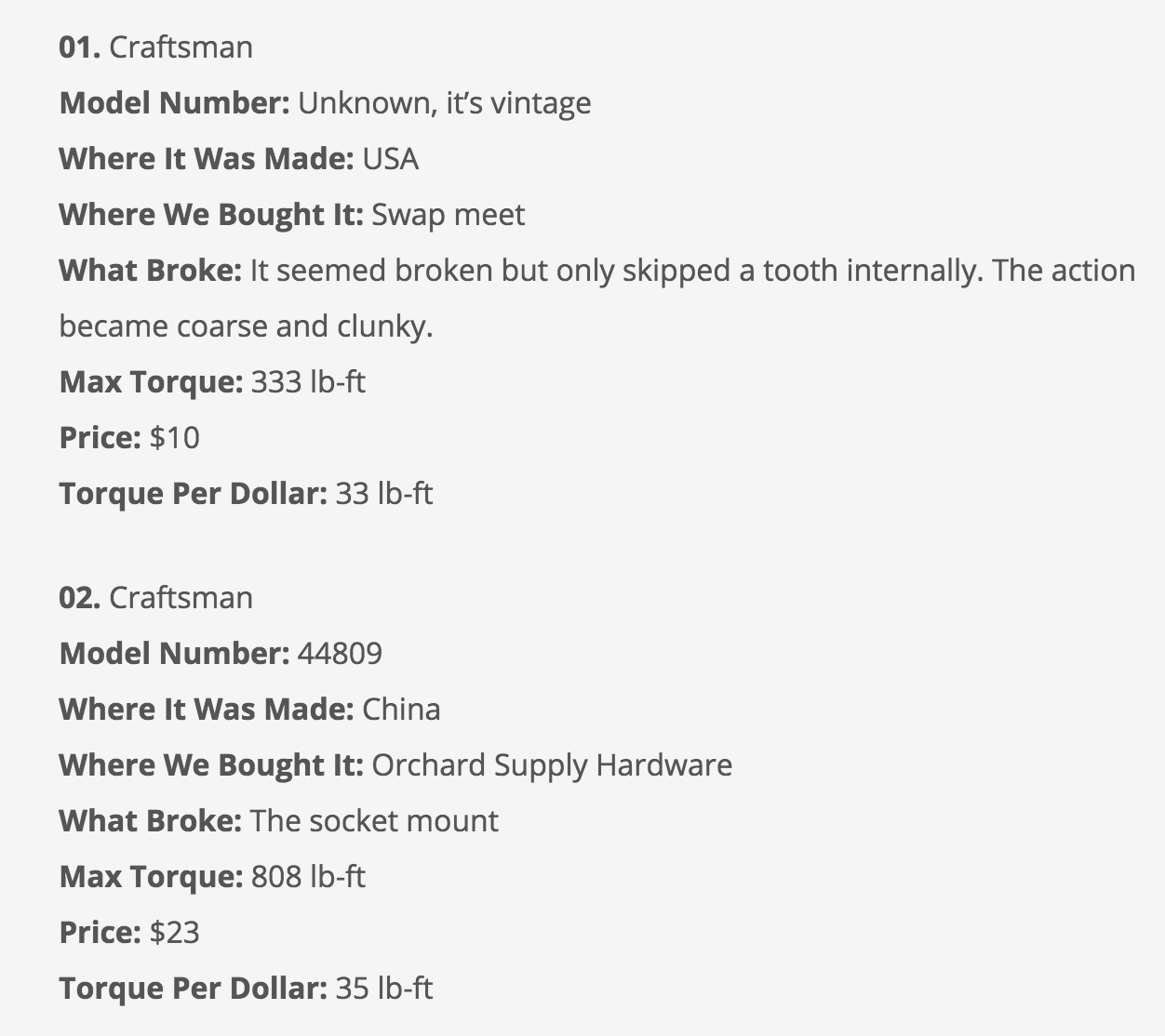 So Hot Rod Magazine did this Ratchet test a while back that keeps getting lost to me when I try to show people why I do buy Harbor Freight stuff now when I needs something fast. I do not have a Snap On account and when I did buy from them way back when it was a stretch to afford the tools.