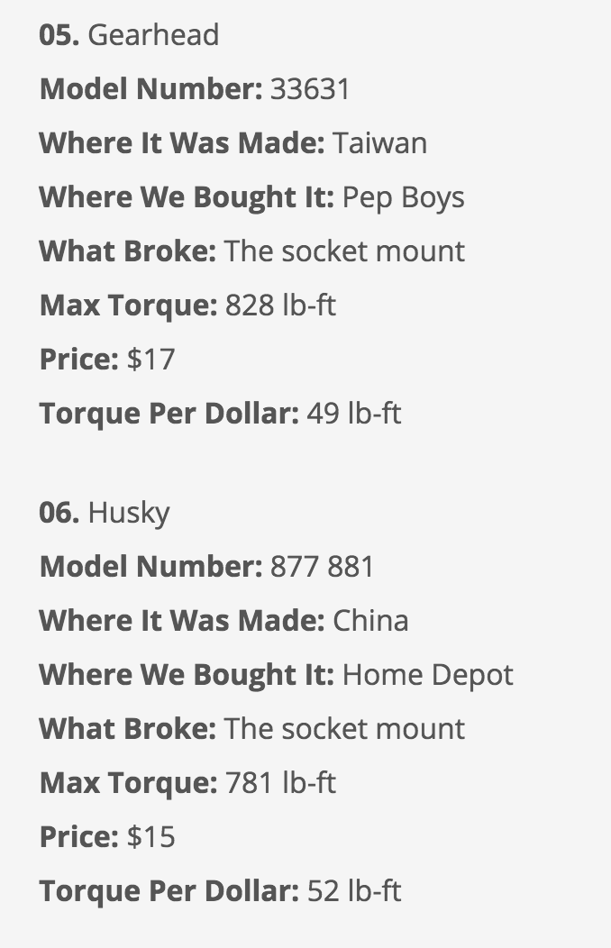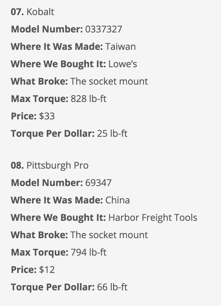 Anyway no Snap On units are tested or Matco and Mac are left out of the picture too. Just in the explanation video on the top but, the Harbor Freight unit lasted fairly well with no the ratchet system being the failure point!