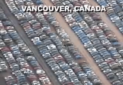Then you look at Port Newark which is the second image on the video and the image is England. I have been there as I worked in the auto industry and they are not parked there for long. At least last few times I drove into or out of New York the lots were only partially full. So that may be only a picture caught during an unloading session before all the cars found their way to railroad car or car carrier trucks to be delivered.
