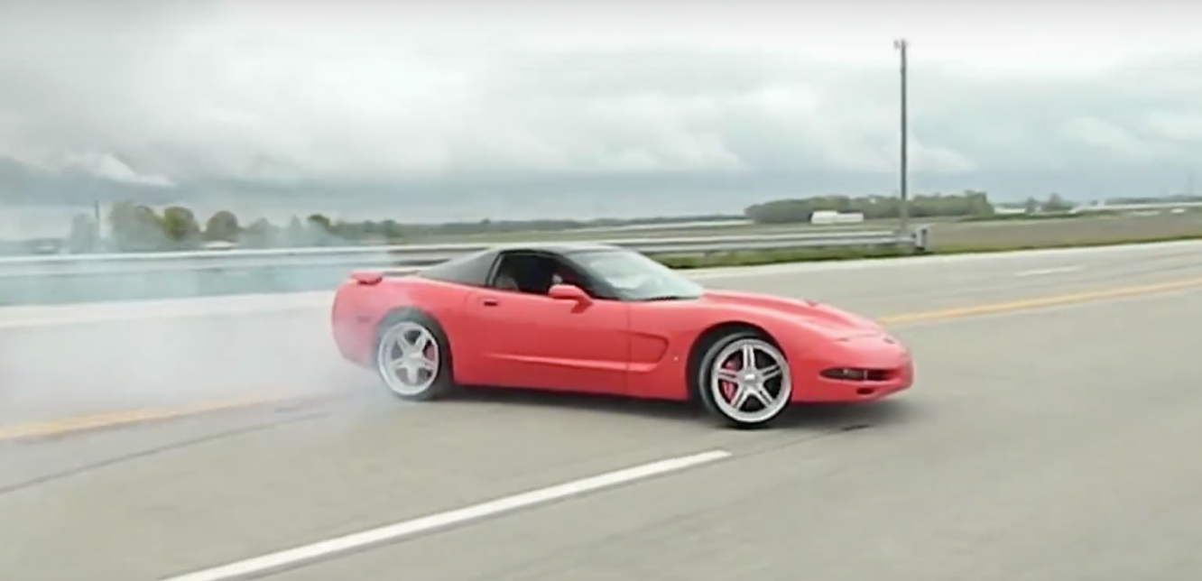 Now we mostly see Mustangs doing exactly this sort of thing but, hey this Vette driver pulls the number back over a bit. Takes the heat off of all the Mustang idiots out there it would seem?