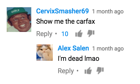 Anything you can think that would be a funnier comment to seeing this driving on the road still? I could think of a few off-hand, can you…