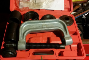 This time instead of buying entire LCA’s and replacing them requiring a lot of effort, I bought a set of Graphite Impregnated Lower Ball Joints from RockAuto on sale for $45 for both shipped to my house. I then went and bought a Ball Joint Press from Harbor Freight and installed the replacement.