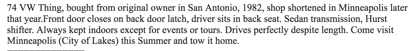 Shorty Volkswagen Thing on Craigslist is what every Volkswagen owner either wants or dreads. My brother owns an Acapulco thing and he will be aggravated seen this.