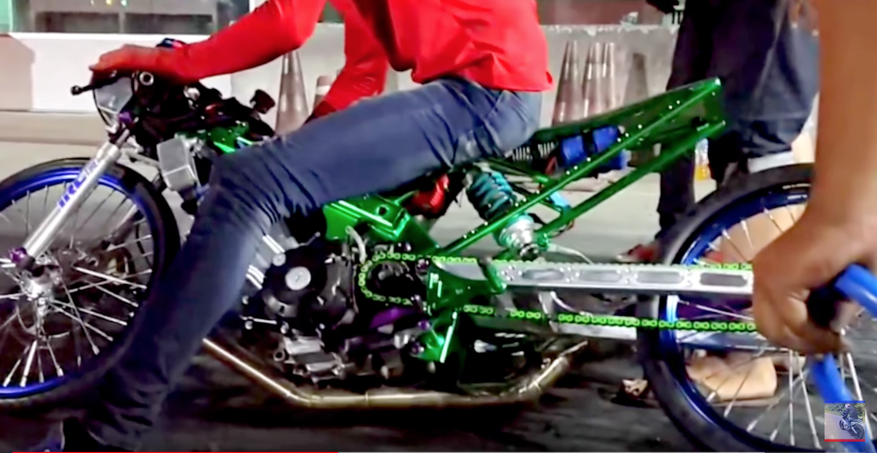 THAILAND’S FASTEST Drag Bike or Moped could be more like it when you look at this thing. I mean yes there are junior dragsters our there but, this drag bike really pushes the limits of the term Bike.